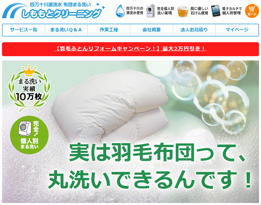 しももとクリーニングの人気ナンバー1「羽毛布団まる洗い」コースの料金